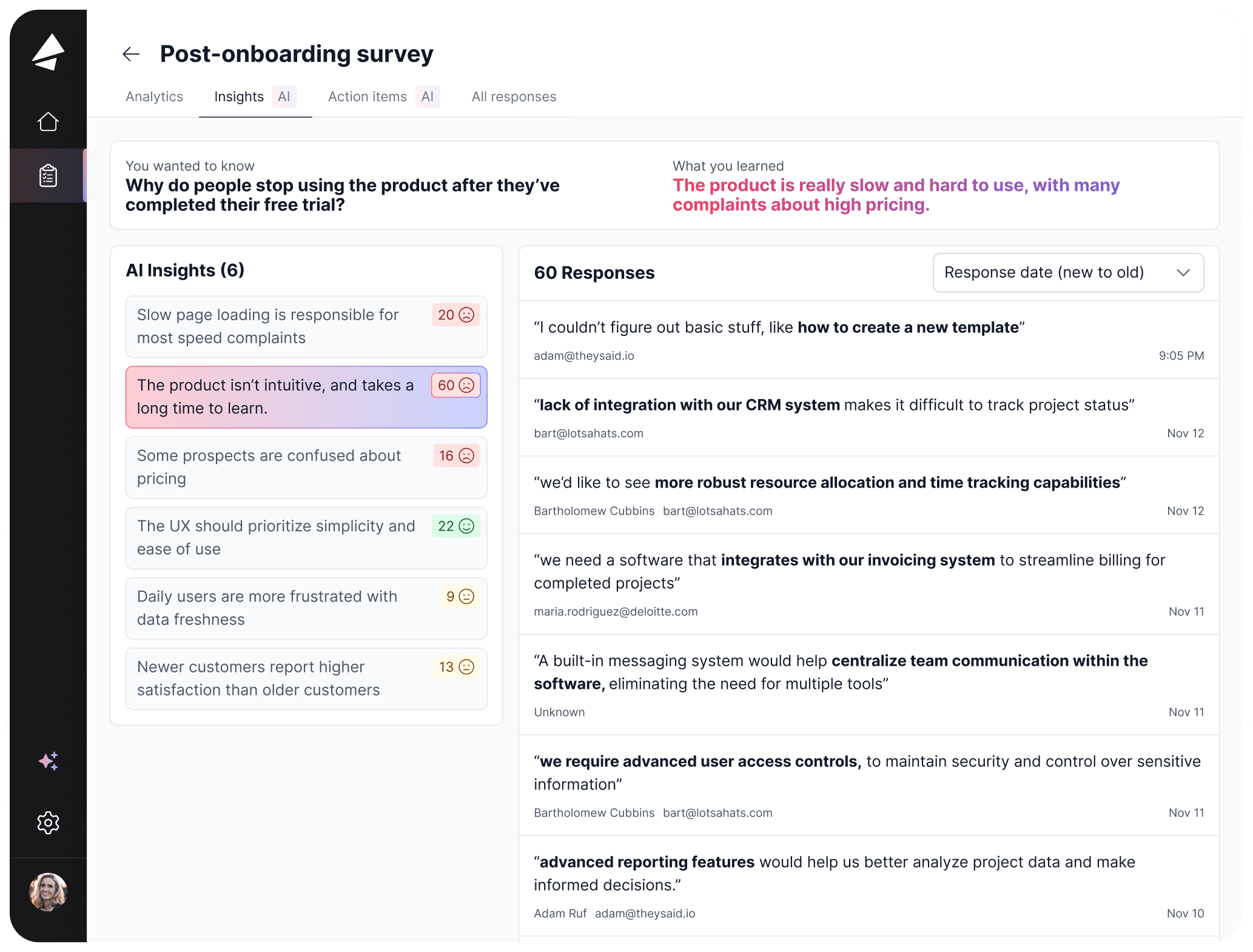 As your responses come in, AI analyzes the feedback for themes and insights that need your attention.