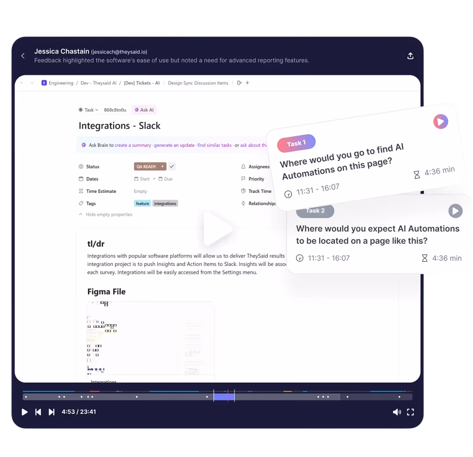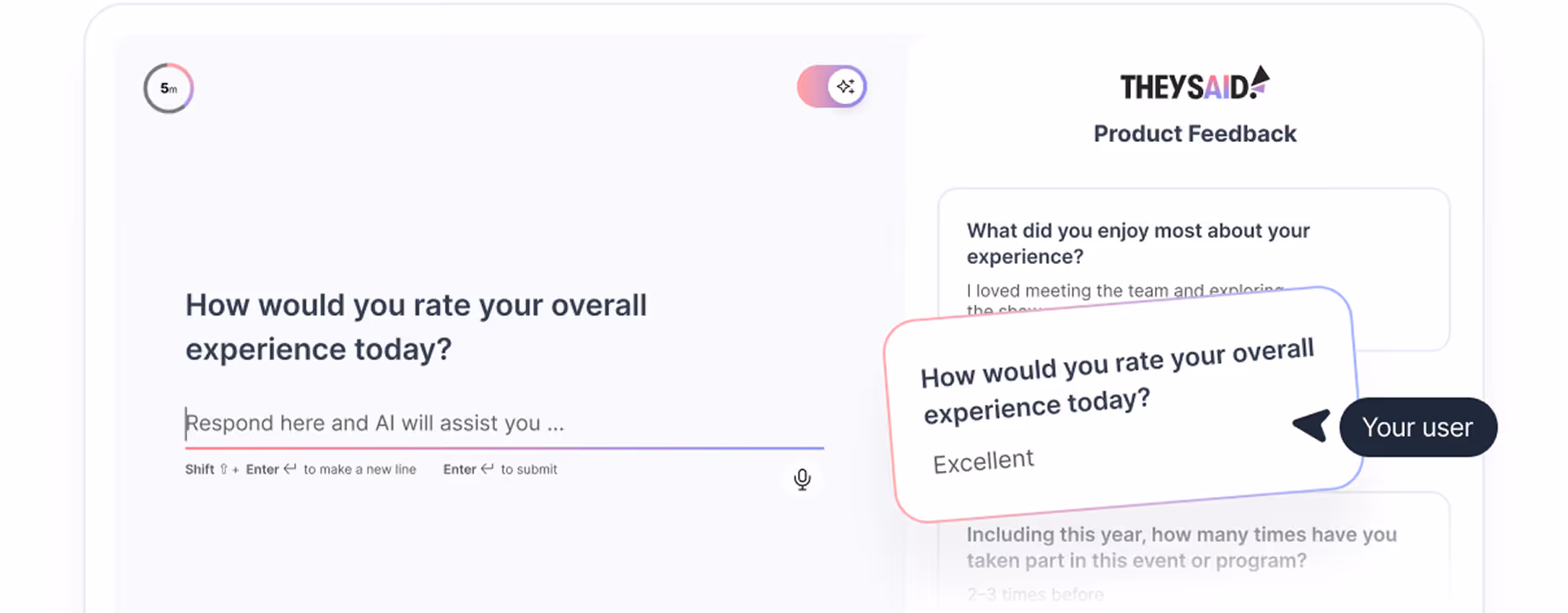TheySaid gives design teams rich user feedback—faster and with less effort—so they can refine UX, validate ideas, and create experiences that truly resonate with customers.