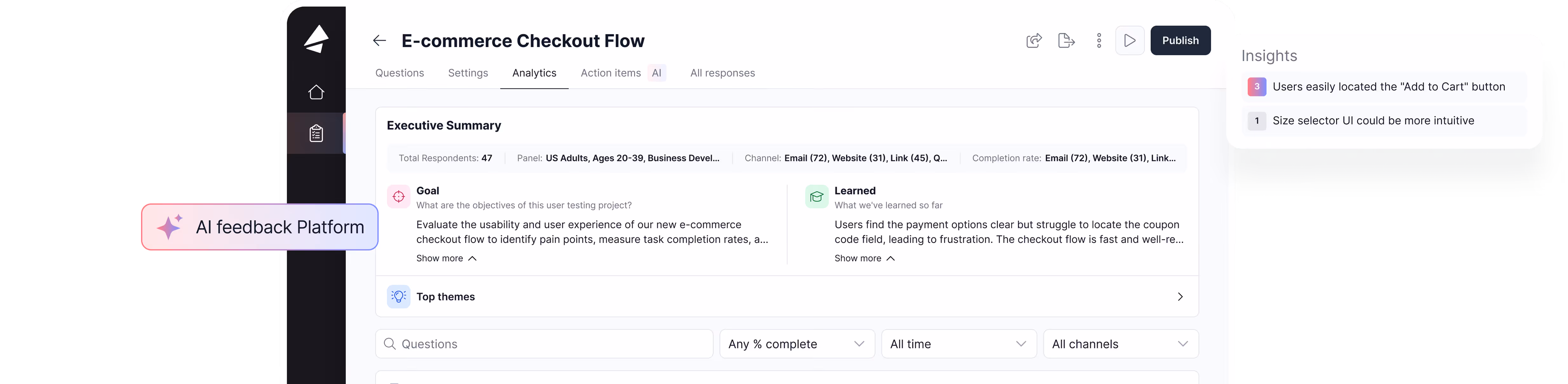 Run AI user testing, moderated interviews, and intelligent surveys all in one unified feedback platform.