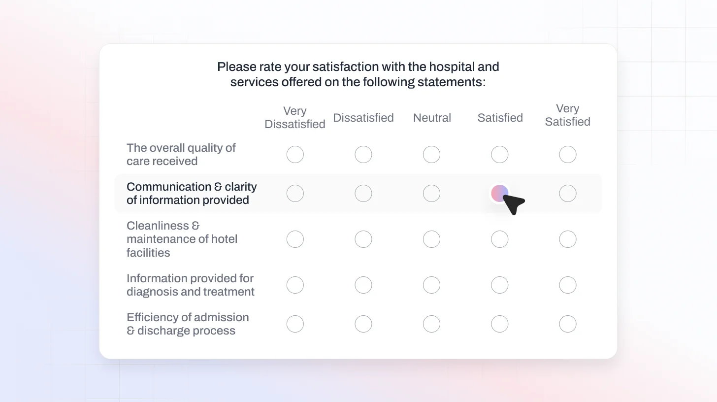 Healthcare surveys help clinics and hospitals measure satisfaction, quality of care, and communication effectiveness between staff and patients.