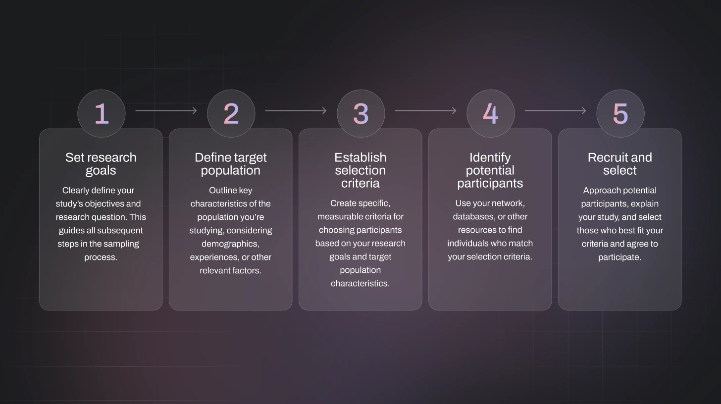 Purposive sampling is widely used in qualitative research when the goal is to focus in depth on a particular phenomenon. The following five steps outline how to implement purposive sampling effectively.