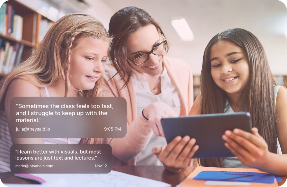 Students learn differently, and one-size-fits-all approaches miss individual needs. AI feedback uncovers specific learning preferences, classroom environment issues, and teaching methods that resonate with different student populations.