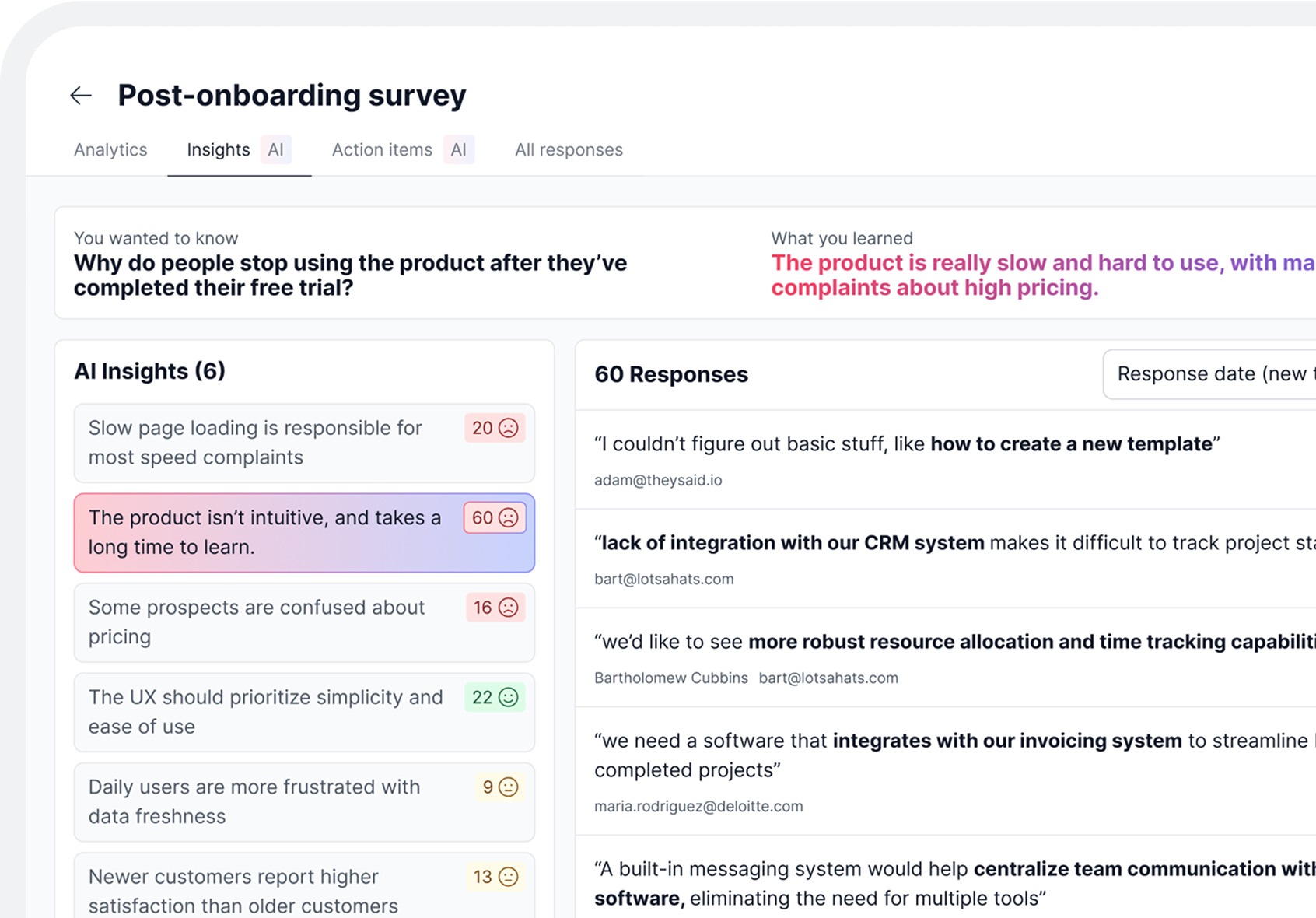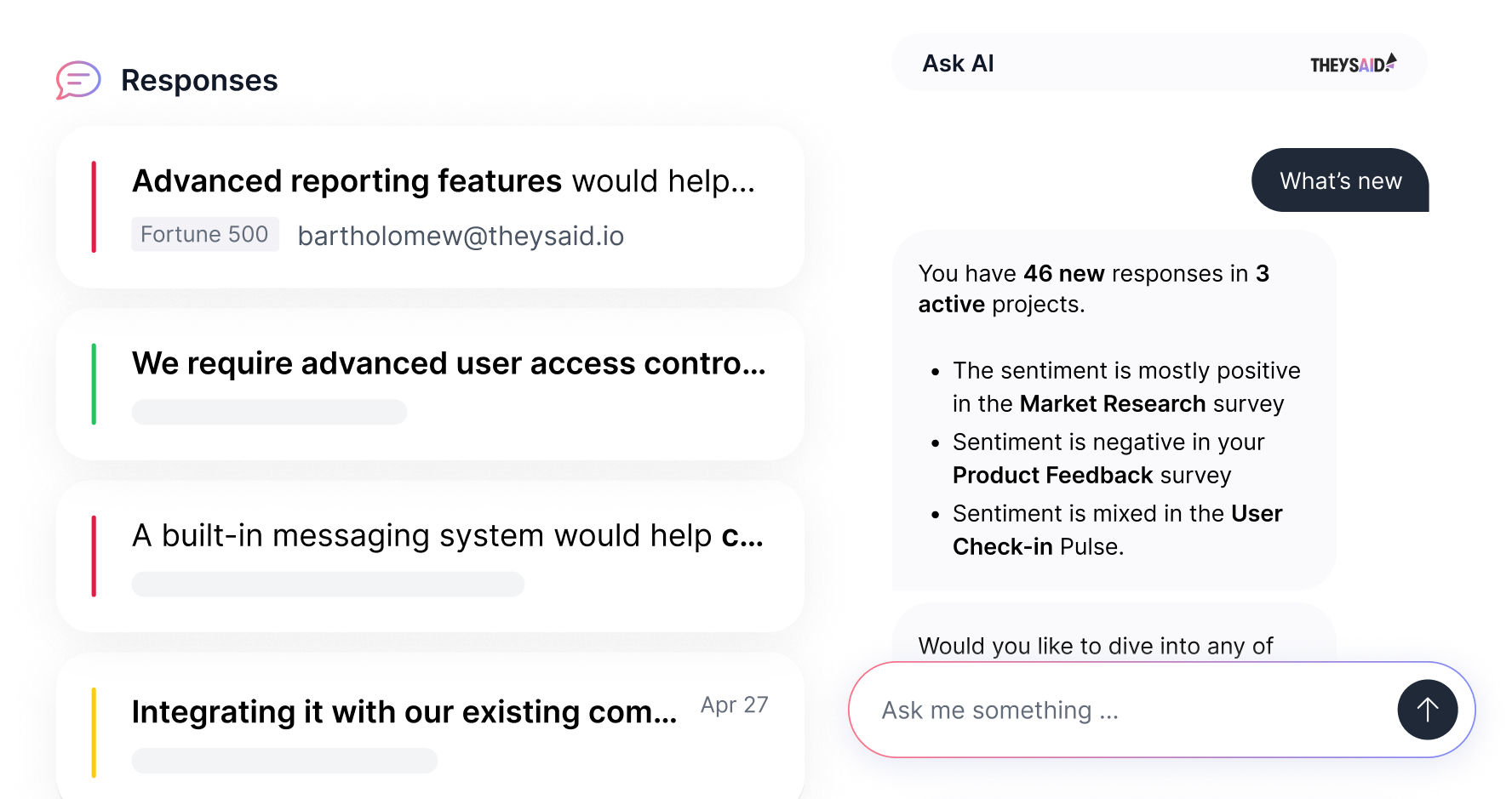 AI answers questions about your centralized feedback repository of projects.